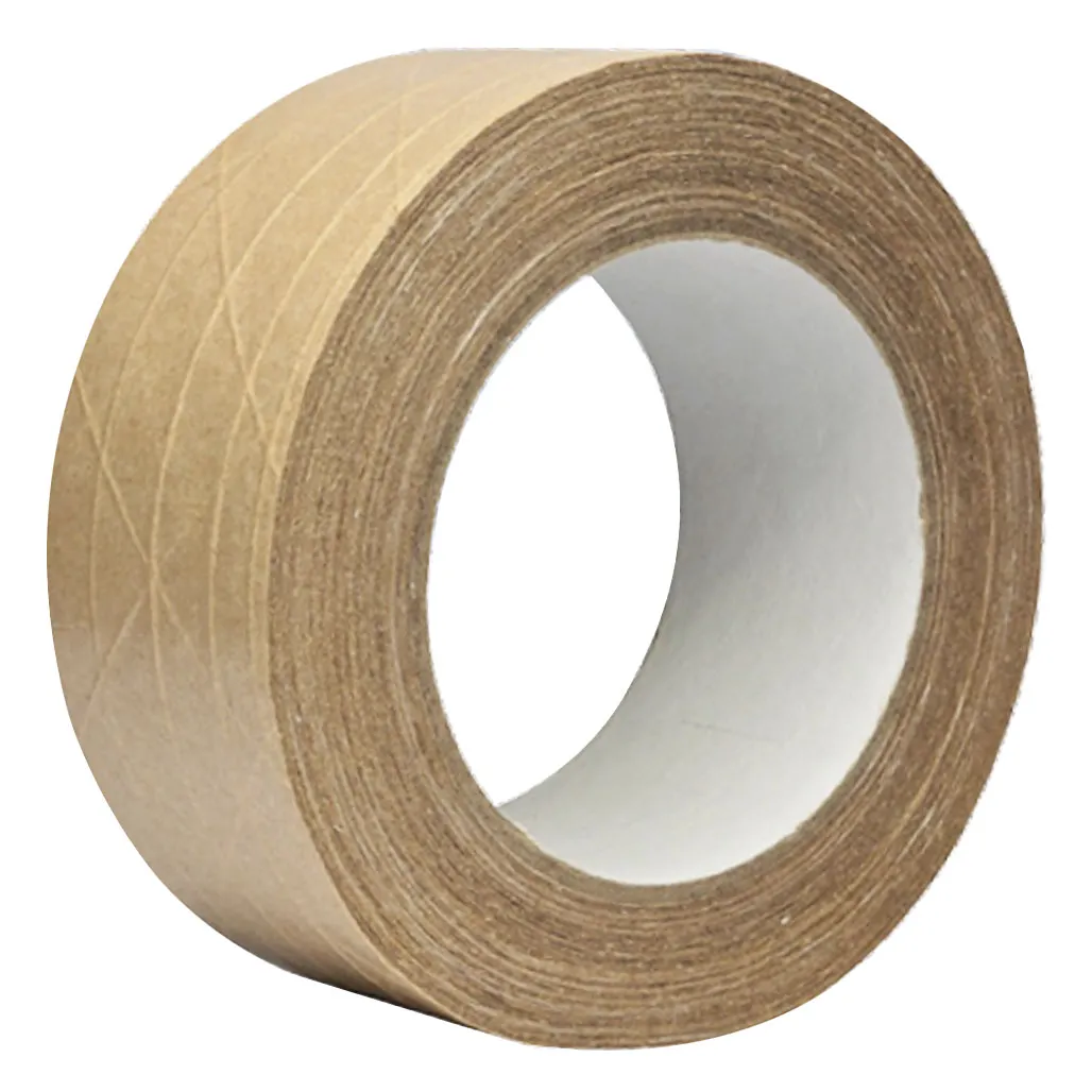 Reinforced kraft paper tape featuring hot melt adhesive serves as a heavy-duty and eco-friendly packaging option. Its fibreglass reinforcement provides exceptional tensile strength, making it ideal for securely sealing heavy or high-value cartons during transit. This tape delivers instant, aggressive, and tamper-evident adhesion, which is particularly beneficial for logistics and e-commerce applications.